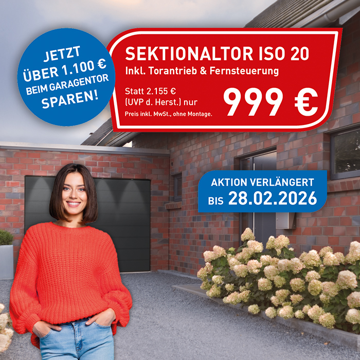 JETZT ÜBER 1.100 € SPAREN – MIT DEM GARAGENTOR MIT 20 MM DICKE!